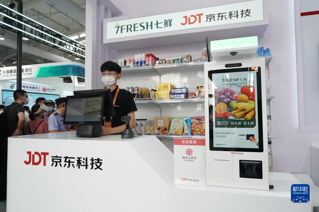9月4日在服貿會首鋼園區金融服務專題展拍攝的數字人民幣支付體驗臺。