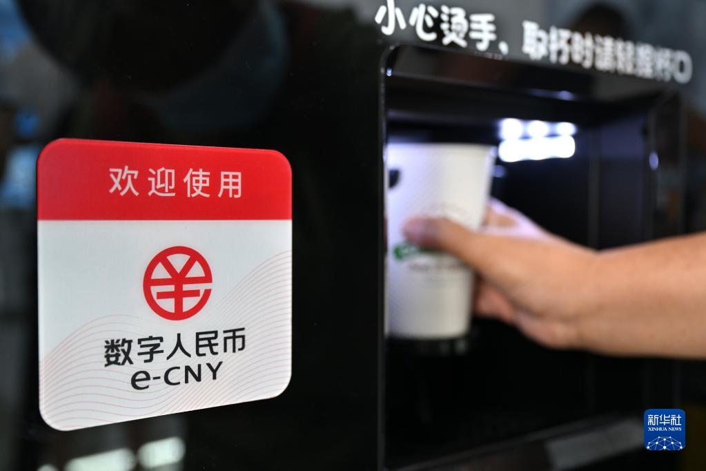 9月4日,一名觀眾在服貿會首鋼園區金融服務專題展體驗用數字人民幣錢包買咖啡。