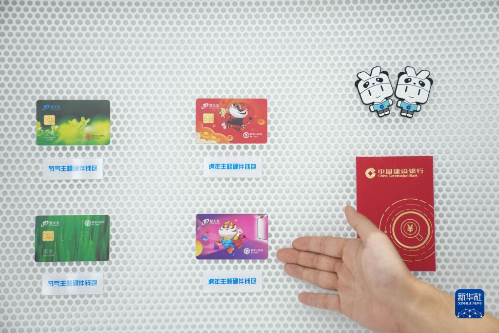 9月4日,在服貿會首鋼園區金融服務專題展上,一位中國建設銀行工作人員介紹幾款數字人民幣硬件錢包。