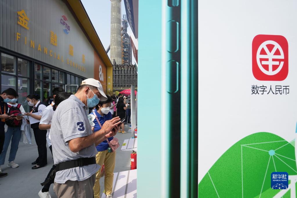 9月4日,在服貿會首鋼園區金融服務專題展數字人民幣大道內,參觀者了解體驗數字人民幣應用。