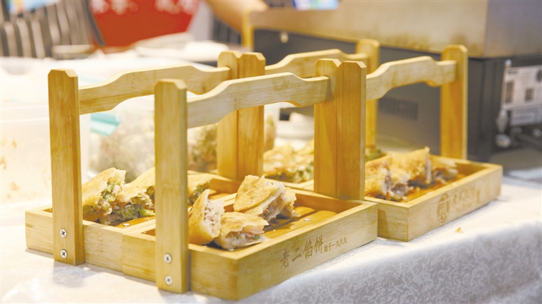 再往前,是保定老字號(hào)美食區(qū)。一個(gè)個(gè)展位上,很多人們耳熟能詳?shù)睦献痔?hào)勾起老保定的鄉(xiāng)愁。