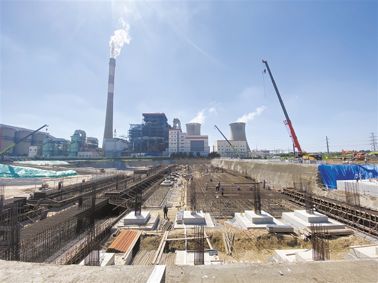 在保定西南的競秀區大唐九期項目,主廠房土方挖掘工作已經完成,樁基施工完成了99.5%,基礎褥墊層基本完成,汽機基礎鋼筋綁扎進度完成55%……站在施工現場俯望,現場一片忙碌,一座年發電量35億千瓦時,可滿足1604萬平方米供熱面積的現代化電廠,已經初顯雛形,正在拔節生長。