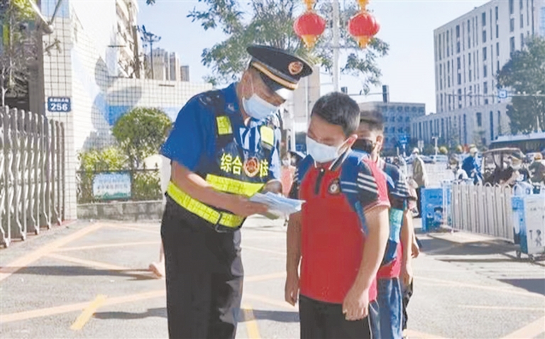 此外,包括一大隊、環衛、機動車管理中隊等執法局各部門,對學校周邊市容環境秩序進行了管理、盯守。完善校園“門前五包”管理制度,對周邊100米范圍內的沿街門店進行逐一走訪,入店宣傳倡導,排查問題,建立臺賬,加強預判,加大上、下學道路的執法管理力度。