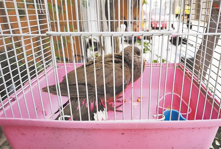 黨阿姨女兒龐薇向記者介紹,8日清晨,母親發現有只鳥一直在單元門前的地上走來走去。“這只鳥的羽毛呈灰褐色,體形要比城市里經常看到的鳥更大一些,走路姿勢有些異樣,見人靠近后也不飛走。”龐女士說,母親懷疑這只鳥腿部受傷了,于是找來了一個鳥籠,把鳥捉住后放了進去,帶回家中暫時照料。