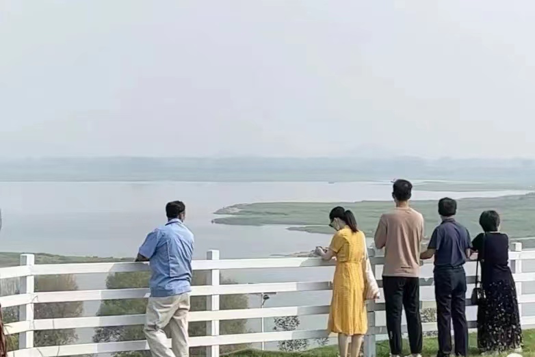 游客在瀑河生態休閑度假區眺望煙波浩渺的瀑河水庫。 小兵 攝