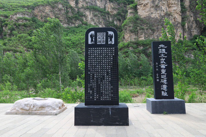 《御射碑》之新發現對研究北魏早期政治、軍事、交通、文化有著重要意義。在諸多專家學者參與指導下,對位于口頭村五號橋附近,北魏太武帝東巡碑兩處遺址進行了保護重建,并于2020年10月建成。每處遺址分別由臺基、東巡碑遺址題名碑、東巡碑遺存碑座、復刻東巡碑及紀念碑記組成。
