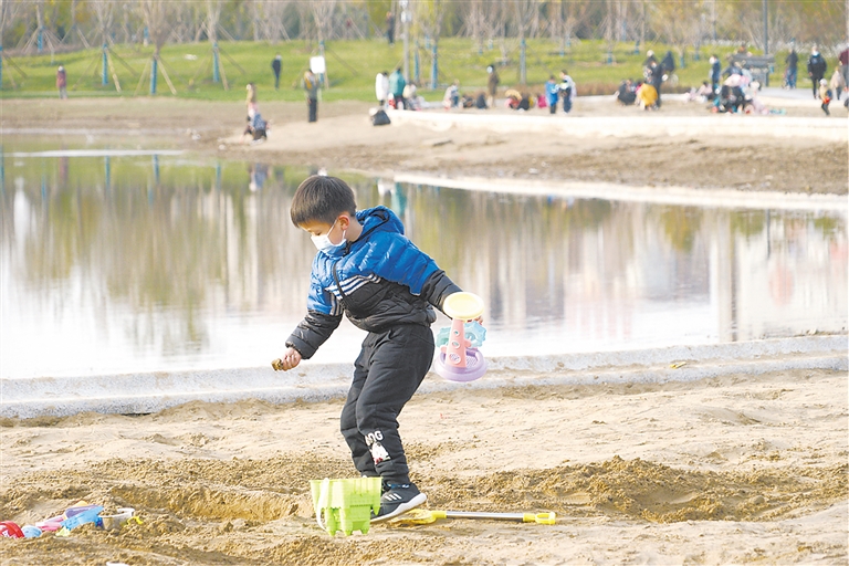 玩水、玩沙子,估計是不少孩子童年里最喜歡的娛樂項目。相信每個家長都深有體會,小孩子一頭扎進沙坑里一挖就是好幾個小時。現在這樣輕松帶娃的“勝地”在環城水系公園里也能找到啦,黃花溝公園(西園)里的星星海灣——保定市第一個戶外人造沙灘。寬敞的親水空間,柔軟的人造沙灘,還有供家長休憩的遮陽長廊,天氣晴朗時,帶上小朋友和大朋友,背上小鏟子和小水桶,來這里建造一座自己的水邊城堡,是一件十分愜意的事。