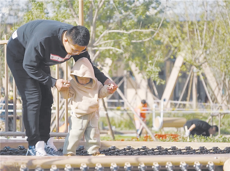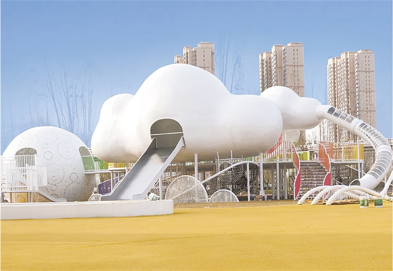 沙坑里有蹺蹺板、云朵滑梯,衛生間有兒童洗手臺,樹林中有“科普課堂”,充滿童趣的指示引導……古城市民期待已久的環城水系公園,不僅自然環境優美,而且暢玩游樂設施豐富,能夠滿足孩子們休閑娛樂、戶外運動、探索學習等多種需求。