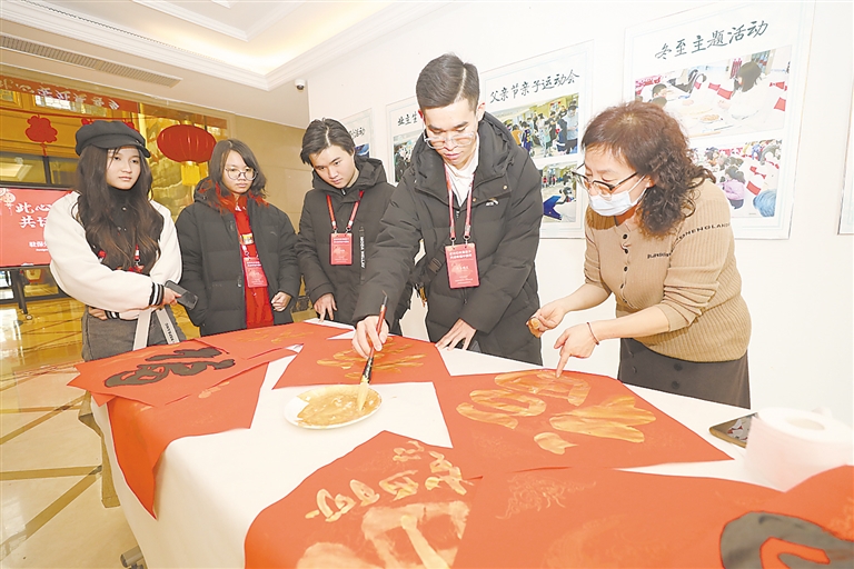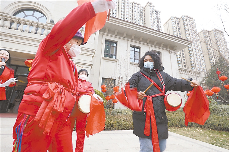 敲腰鼓、包餃子、寫春聯……這些中國人已經司空見慣的年俗,對于外國人來說卻十分新鮮。1月14日,農歷臘月二十三是中國傳統節日小年。當天上午,來自葡萄牙、埃及、俄羅斯、日本、孟加拉、尼日爾、巴西、越南、印度尼西亞等9個國家的17名河北大學外教和留學生走進競秀區玉蘭花園社區,和社區居民一起過小年。