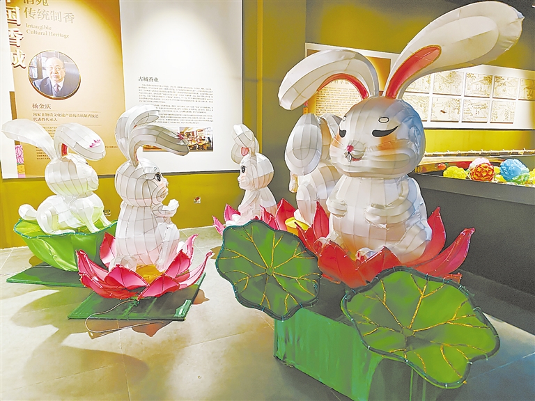 絲綢質地的保定特色花燈“保蓮兔”精致可愛,惟妙惟肖。