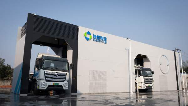 協鑫電港位于成都的首座自主研發的雙通道重卡換電港。(受訪者供圖)
