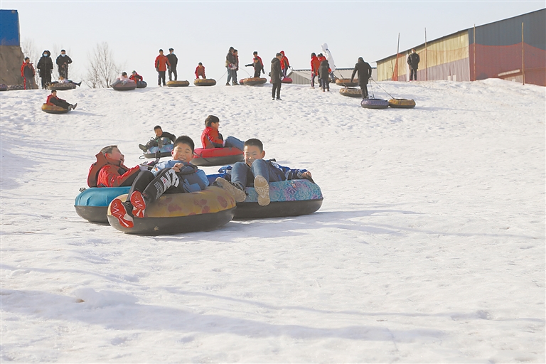 體驗雪圈速滑的孩子們。 李勇超 攝