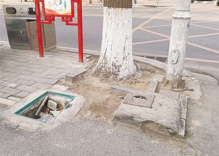 “這個(gè)坑和水泥墩就在道路的交口處,挺明顯的。坑里總有一些碎石、落葉等,有時(shí)候還有路人隨手丟棄的垃圾。水泥墩應(yīng)該是當(dāng)初拆除線桿時(shí)候沒(méi)有拆干凈,造成路面凸出來(lái)一塊兒。”孫先生告訴記者,他經(jīng)常路過(guò)此處,有一次晚上沒(méi)注意還差點(diǎn)絆倒,“感覺(jué)挺危險(xiǎn)的,而且也比較影響城市形象。”