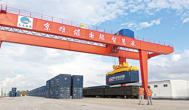 2022年6月30日,一列鐵海聯(lián)運(yùn)班列從京雄保國(guó)際智慧港(保定)順利發(fā)車(chē),抵達(dá)秦皇島港集裝箱碼頭后,直接搭載海上班輪運(yùn)往韓國(guó),開(kāi)創(chuàng)河北省首個(gè)外貿(mào)“鐵路箱下水”業(yè)務(wù)的先例。未來(lái),還將與眾多港口開(kāi)辟更多國(guó)際運(yùn)輸線路,讓京津冀的貨物走向世界,讓世界的貨物匯聚京津冀。 泰通國(guó)際供圖