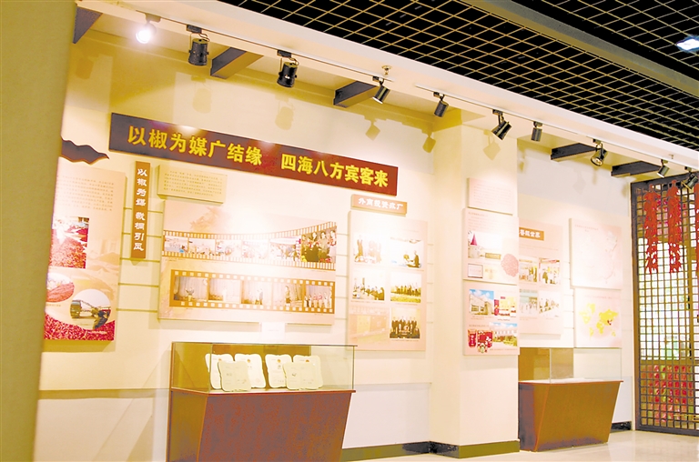 面積370平方米的展館集宣傳展示、文化科研、征集收藏等多種功能于一身,分為“千年古縣 堯母故里”“天助人勤 椒紅沃土”“妙手調美味 椒油香滿天”“辣業驕子 商海弄潮”“以椒為媒廣結緣 四海八方賓客來”“辣都風情 厚德載物”“堯韻椒鄉 風生水起”7個板塊,以圖片、實物、史料、雕塑、繪畫等形式,結合聲、光、電等展示方式,系統梳理辣椒文化的深厚底蘊和辣椒產業發展的歷史與成就。