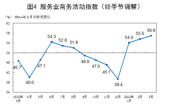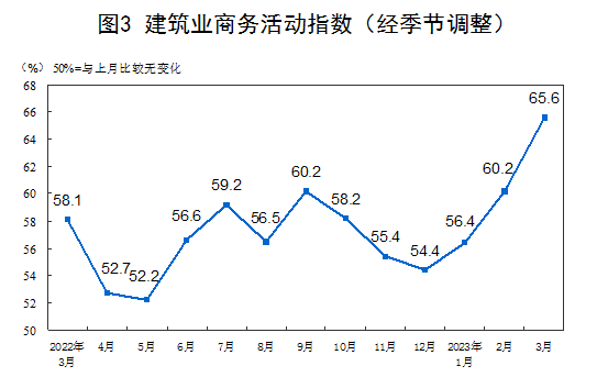 分行業看,建筑業商務活動指數為65.6%,比上月上升5.4個百分點。服務業商務活動指數為56.9%,比上月上升1.3個百分點。從行業看,零售、鐵路運輸、道路運輸、航空運輸、互聯網軟件及信息技術服務、貨幣金融服務、租賃及商務服務等行業商務活動指數位于60.0%以上高位景氣區間;批發、水上運輸等行業商務活動指數低于臨界點。