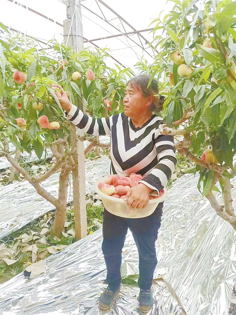 今年,畢芬家的蟠桃搭上鄉村振興的快車,迎來了大豐收,“桃樹盛果期畝產5000斤上下,按今年的行情11元左右一斤算,我這一畝多的大棚加上露天栽種的,純收入能有5萬多元?!鼻逅鹈鄣捏刺揖褪菨M樹的“致富果”,看得畢芬的臉上掛滿了笑容。