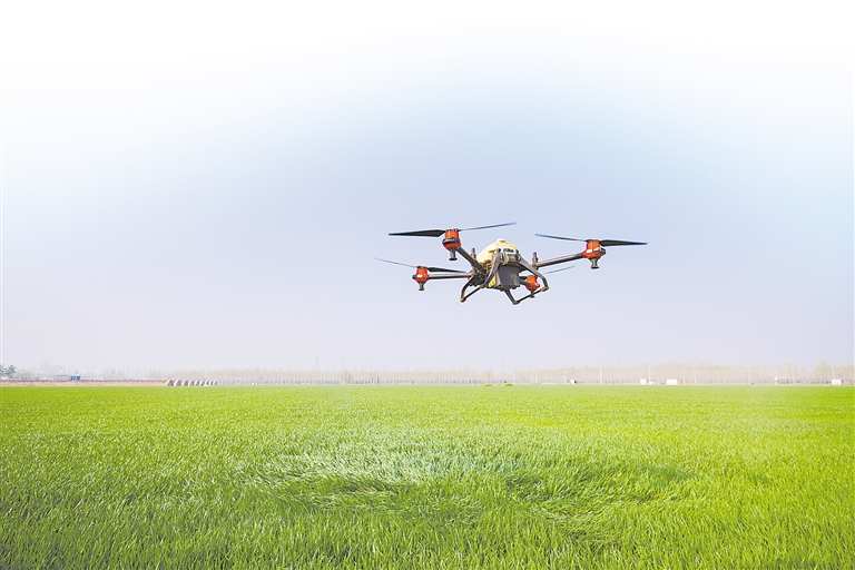 打開機(jī)翼、裝水、稀釋農(nóng)藥、開啟遙控器……在嗡嗡聲中,無人機(jī)帶著20升施藥箱飛上天空,在2米低空掠過麥田,一陣噴霧飄然而下……連日來,村里的種糧大戶牛文啟在合作社農(nóng)技人員的指導(dǎo)下,利用植保無人機(jī)開展春季一噴三防作業(yè),夯實(shí)夏糧穩(wěn)產(chǎn)提效的基礎(chǔ)。