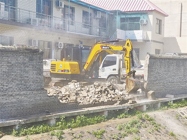 在環城水系旁,一處違建彩鋼房正在被拆除。