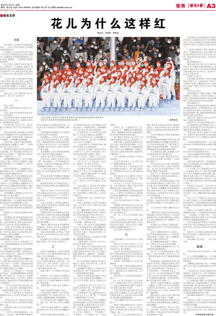 濃墨重彩做好冬奧會宣傳,全方位報道馬蘭花兒童聲合唱團和鄧小嵐老師的感人事跡,推出報告文學《花兒為什么這樣紅》等一大批新聞報道,引起了社會強烈反響。