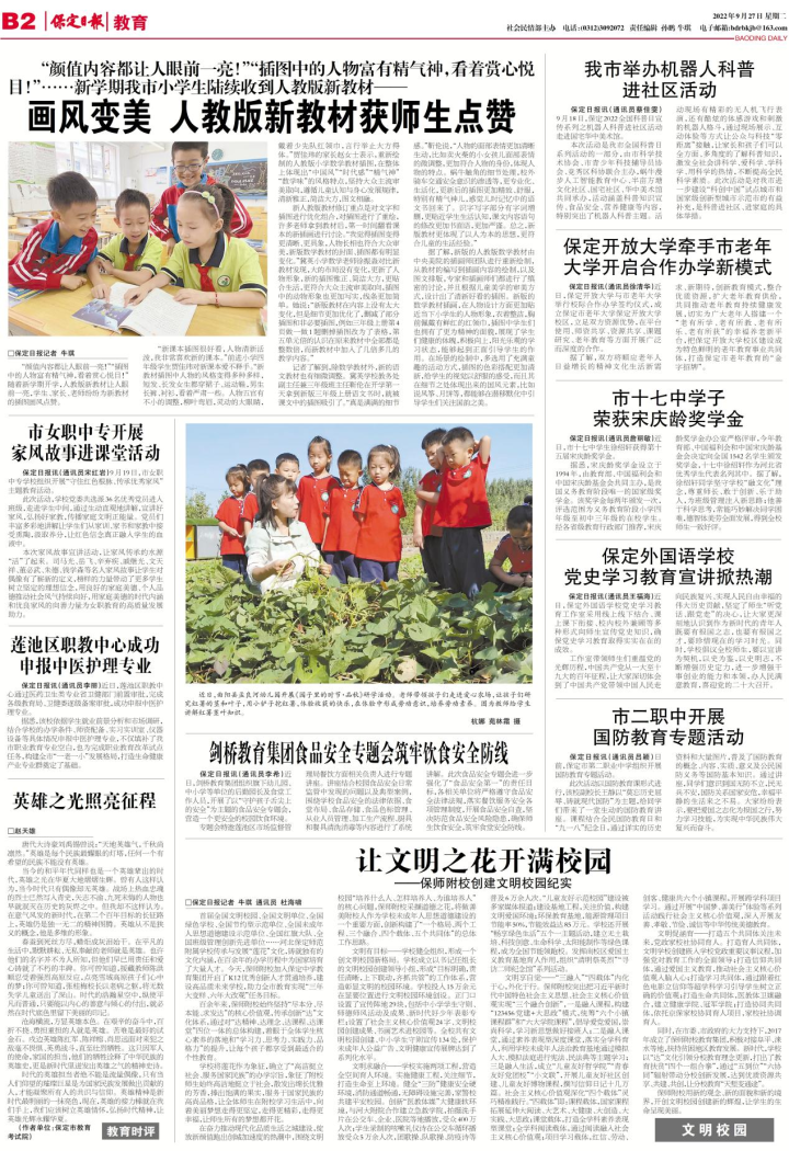 保定日報積極傳承弘揚優秀傳統文化、革命文化和社會主義先進文化,推出一批有特色、有品質、傳播廣泛的新聞作品和文學作品。