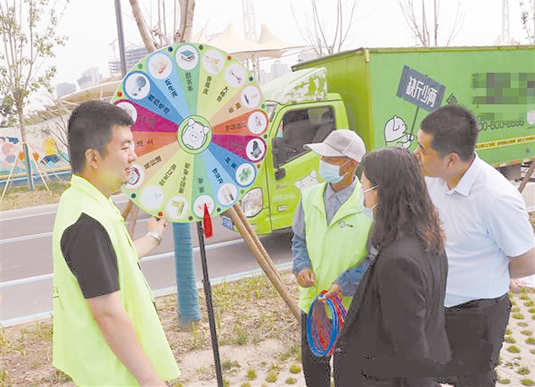 在北湖公園,涉及垃圾分類知識的轉盤游戲,簡單易答,吸引眾多居民參與。
