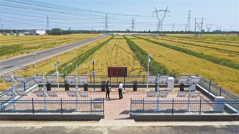 “動下手指,就能實現澆水施肥,指哪打哪,效率很高。”郭碩邊說邊用鼠標點了一下“灌溉”按鈕,地埋式自動伸縮噴灌聞令“露頭”,清冽的水為烈日下的農田“解渴”。這樣的場景,讓牛文啟覺得,智慧農田“太給力了”。