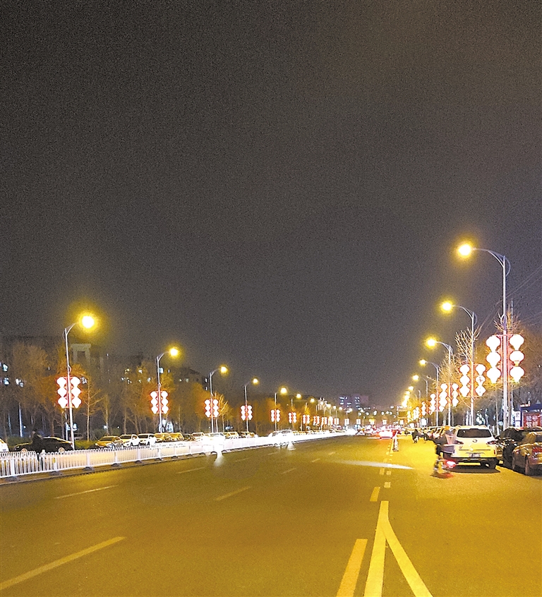 長城北大街路燈照亮市民回家路。 張麗 攝