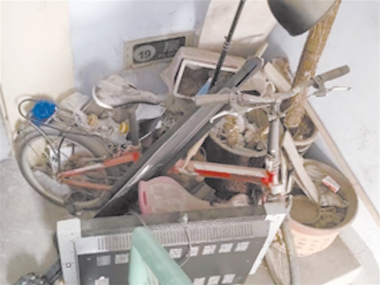 “現在天氣這么熱,溫度太高,萬一引起火災怎們辦,實在是太擔心了。”根據小區居民的提示,記者在該小區19層和20層的樓梯間,看到堆積著的自行車、花盆等雜物,幾乎堵住了樓梯通道,此外還有紙箱、小柜子等,往里走是自行車、電動車,消防栓前面甚至放了個簡易小鞋架。電動車和雜物上布滿灰塵,看起來已經許久無人問津,這樣的環境確實存在較大的安全隱患。