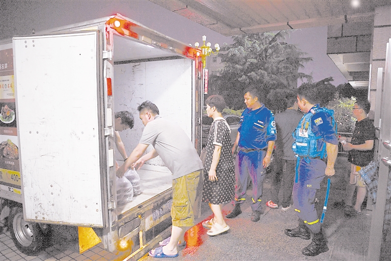 8月1日15時許,在涿州靖雅學校安置點,來自大柳村、小柳村、北茨村、佟村等附近村莊的村民已被安置在學生宿舍樓內。此時,一車滿載純凈水的物資救援車停在樓門前,在村干部的招呼下,村民紛紛下樓,開始搬運。