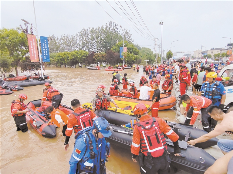 保定日報訊(記者李巖 張潔)記者8月2日從涿州市抗洪搶險一線了解到,涿州本地以及來自全國各地的救援隊伍迅速集結,正在全力救助被洪水圍困的群眾。