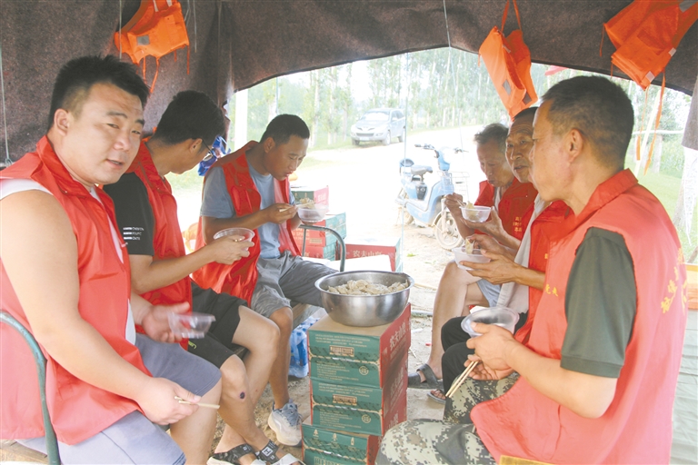 “這幾天志愿者們在大堤上每兩個小時巡堤一次,剛開始吃一些泡面、面包,后來把村里的大鍋拉過來,熬一些簡單的菜。今天能吃上這么香的餃子,真得謝謝村里的‘半邊天’!”看著志愿者們吃著香噴噴的立秋餃子,村黨支部書記蔣二東高興地說。