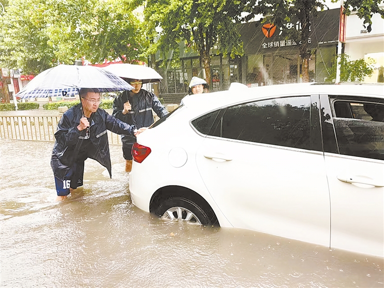 7日,當時積水還很嚴重,樊兆磊緊急協調三臺抽水設備對甲秀路永濟公園路段、雙塔中學路段積水進行倒排,下午5時,水位才明顯下降,低洼地帶還存有少量積水;