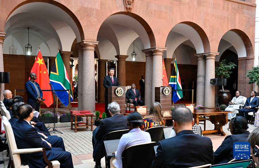 當地時間8月22日中午,國家主席習近平在比勒陀利亞總統府同南非總統拉馬福薩會談后共同會見記者。