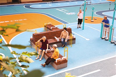 8月30日,在重慶市沙坪壩區石井坡街道一老舊小區,老年人在經過適老化改造的廣場上休憩。孫凱芳攝(人民視覺)