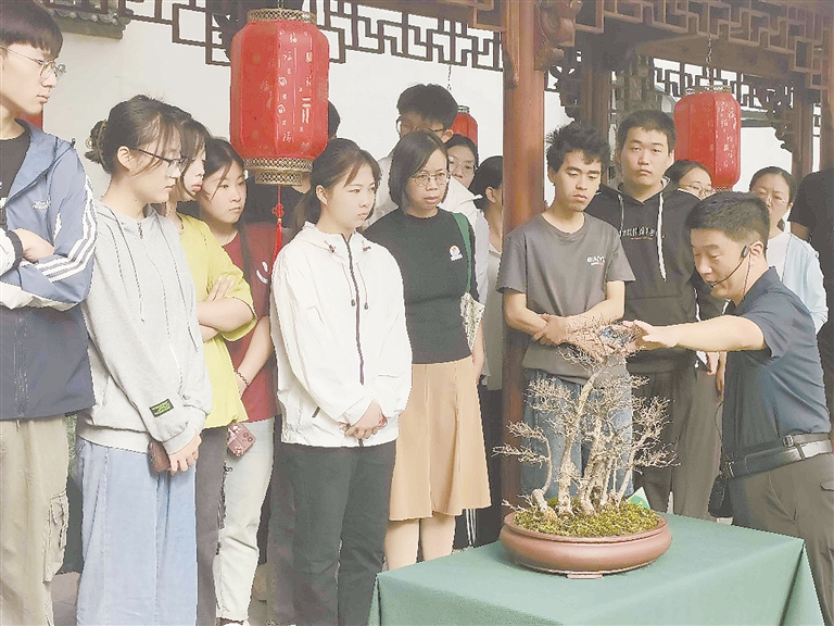 除了吸引眾多市民前來觀賞外,園林專業(yè)2245班的陳芝毓,每聽完一個(gè)講解都會(huì)對盆景進(jìn)行拍照留念,在他們看來,研學(xué)就是“行走中的課堂”,能夠讓他們在實(shí)踐學(xué)習(xí)中,對盆景知識(shí)有了更深入的了解,還提高了學(xué)生自身的專業(yè)素質(zhì)和藝術(shù)修養(yǎng)。“讀萬卷書,行萬里路,只有通過不斷地學(xué)習(xí)和實(shí)踐,才能更好地提高專業(yè)技能。”