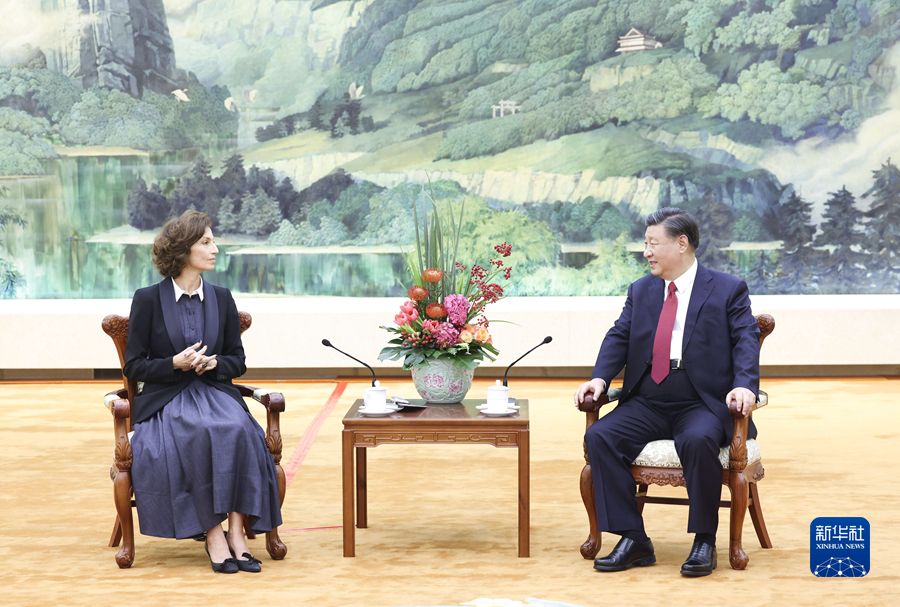 9月28日下午,國家主席習近平在北京人民大會堂會見聯合國教科文組織總干事阿祖萊。