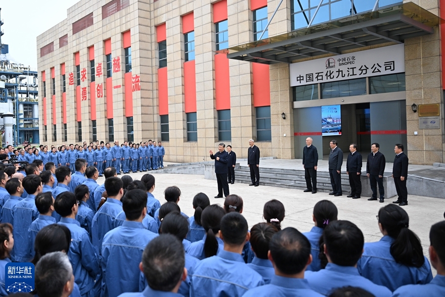10月10日至13日,中共中央總書記、國家主席、中央軍委主席習近平在江西考察。這是10日下午,習近平在中國石化九江分公司考察時,同企業員工親切交流。