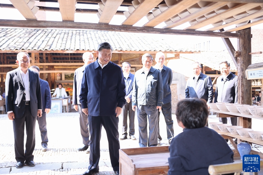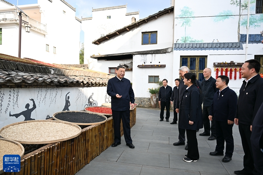 10月10日至13日,中共中央總書記、國家主席、中央軍委主席習近平在江西考察。這是11日下午,習近平在上饒市婺源縣秋口鎮王村石門自然村考察。