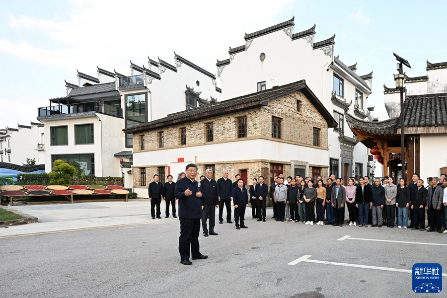 10月10日至13日,中共中央總書記、國家主席、中央軍委主席習近平在江西考察。這是11日下午,習近平在上饒市婺源縣秋口鎮王村石門自然村考察時,同村民們親切交流。