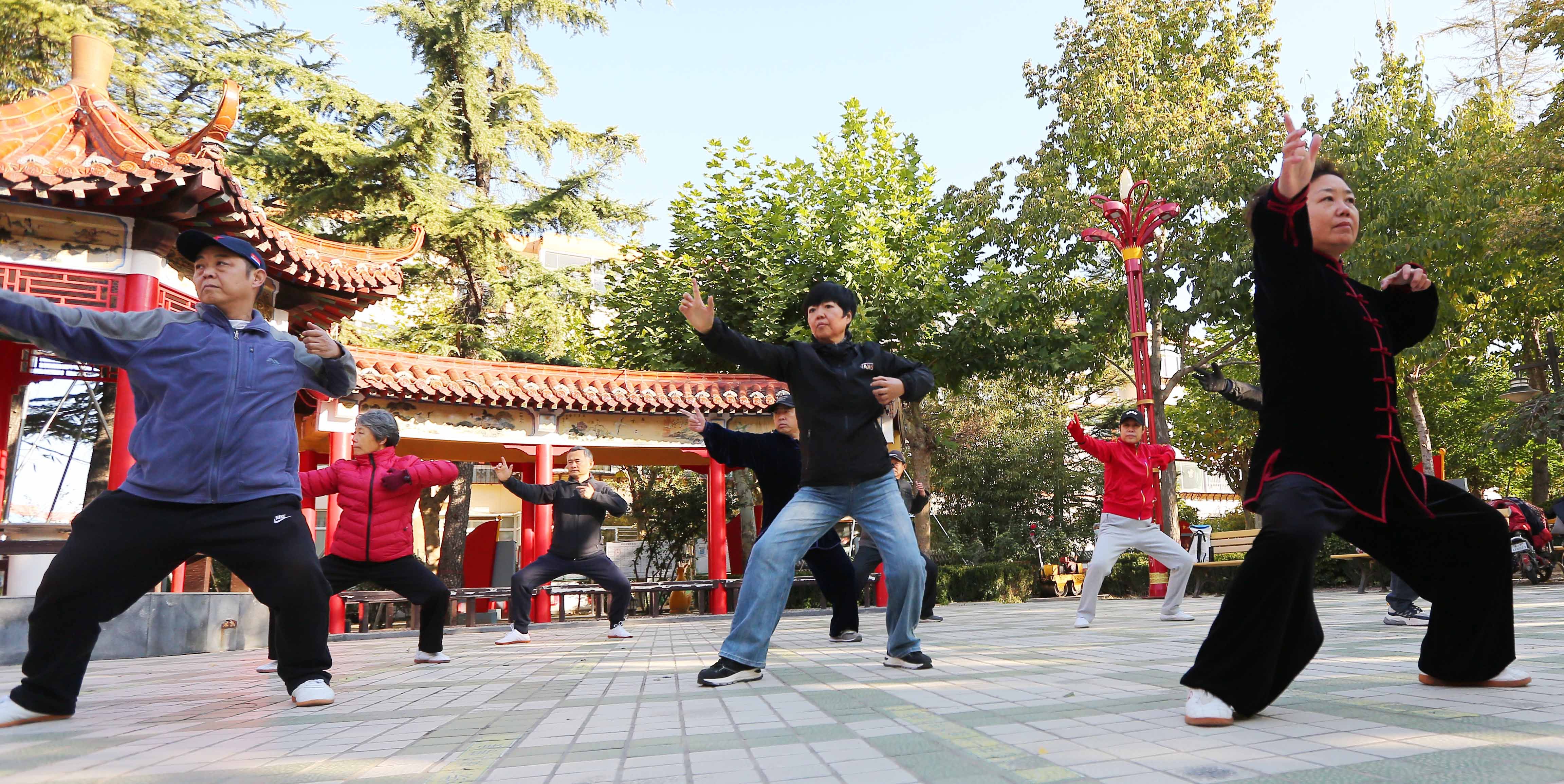 11月7日清晨,天氣晴冷,縷縷陽光透過樹枝間隙灑落身上。在軍休三所小廣場上,10余名軍休干部照例跟隨老師一起學習太極拳,動作剛?cè)岵t灑飄逸。老師細致地把太極拳動作分解,一遍遍地講給大家聽。