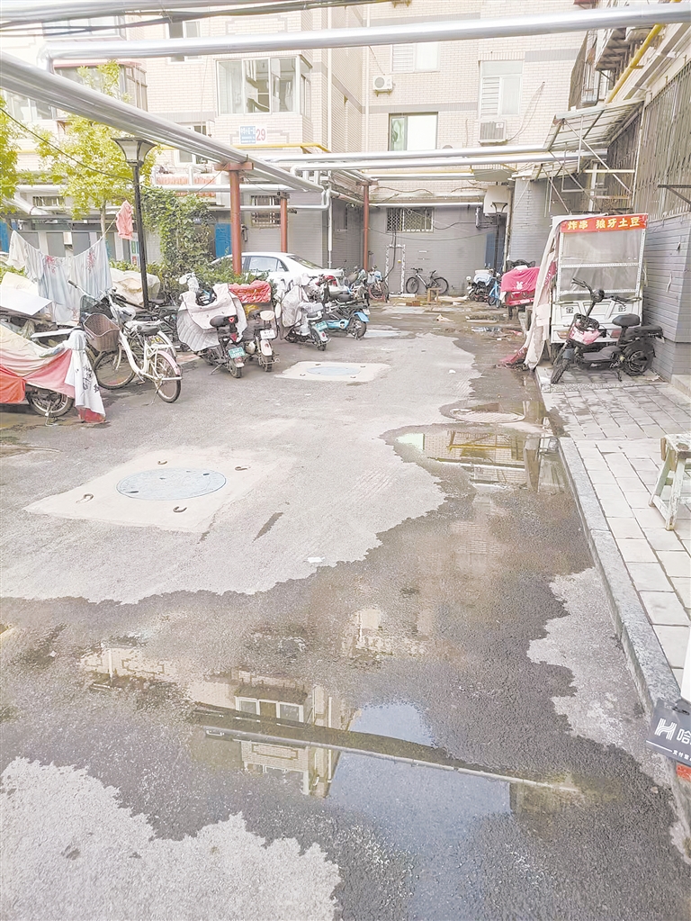 “前兩天又有要堵的跡象,有人好心地清理了,不然堵嚴(yán)實(shí)了,又得大家攤錢(qián)掏?!毙^(qū)里一位居民向記者介紹,近幾個(gè)月這個(gè)井已經(jīng)堵很多次了,最近一次嚴(yán)重堵塞大概是八九月份,水流得滿(mǎn)小區(qū)都是,小區(qū)里停放的自行車(chē)、電動(dòng)車(chē)、汽車(chē)等都不得不泡在污水中。為了避免出門(mén)時(shí)踩到臭水,大家就放了很多墊板,出入都是踩著板子走。“每次堵了還得請(qǐng)人清掏,都是居民和社區(qū)居委會(huì)出錢(qián)?!?/p>