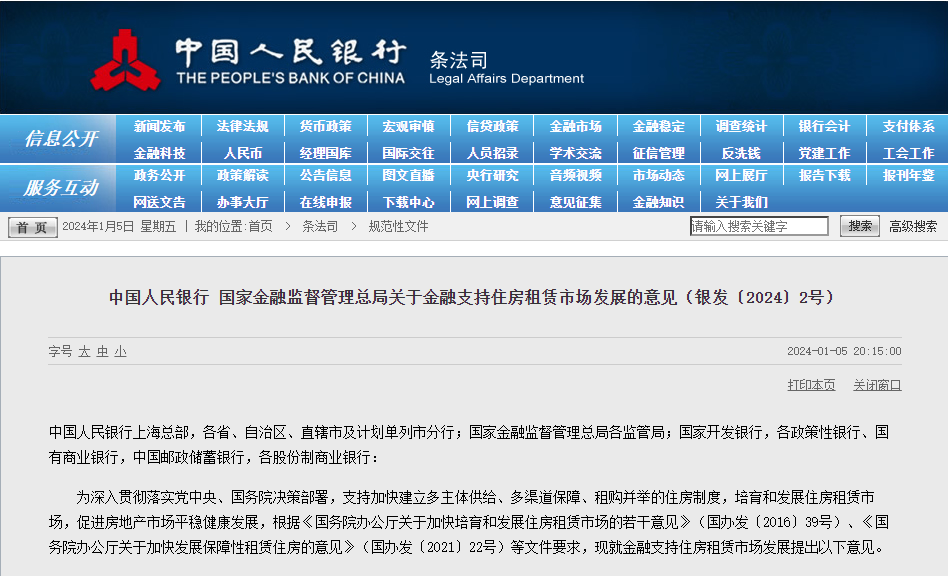 中國人民銀行 國家金融監(jiān)督管理總局關(guān)于金融支持住房租賃市場發(fā)展的意見(銀發(fā)〔2024〕2號)
