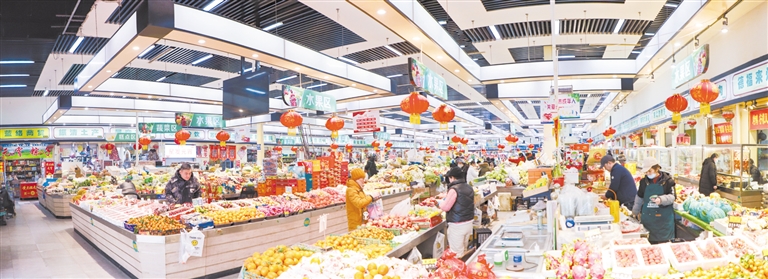 “春節(jié)前,采購蔬菜、零食、驢肉特產(chǎn)等年貨禮盒的市民多了起來,市場近期日均客流量達5000余人次。”張朋輝介紹。