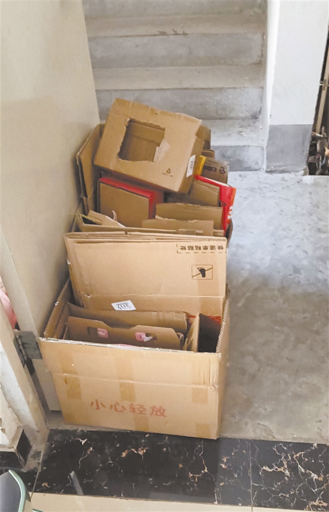 未來(lái)城C區(qū)10號(hào)樓18層消防通道堆放了許多紙箱,存在火災(zāi)隱患。