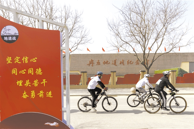 當騎行團自“戀鄉·騎行保定——探尋最美鄉村之旅”清苑站的起點出發,前行千余米后,冉莊地道戰紀念館出現在路旁,有騎手不禁哼唱起了這首70后、80后耳熟能詳的歌曲。