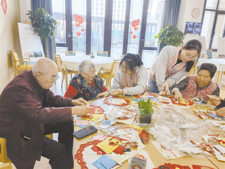 在休閑區,老人們可以圍坐在一起做手工、玩拼圖。