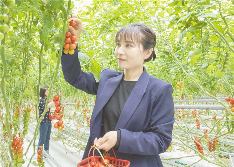 游客在園區(qū)采摘小番茄。 羅大慶 攝