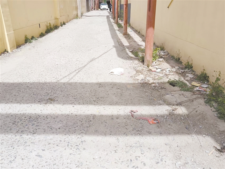 隨后記者到現場走訪看到,這段路并不長,大概100余米,一頭連接著宏欣巷,一頭直通一個大院,更像是一個“胡同”。與宏欣巷相接的路段還算平坦,越靠近大院的位置,路面破損越嚴重,地面裸露著石子,坑洼不平,還散落著不少垃圾。在大院入口處,還有一個凸出地面的井,井蓋也未完全蓋好,露著一條縫。在這個大院子里除了小飯桌,還有一些其他的機構。記者來到這里時,恰逢中午放學時間,孩子們正沿著這條路往小飯桌走。“路不平,媽媽每天提醒我走路時看著腳下。”一位小學生告訴記者,媽媽總叮囑他小心走路,不過他已經習慣了,有時候也會跑著去吃飯。