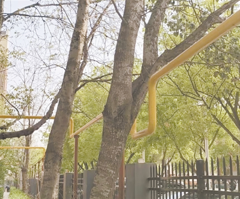 日前,市民王先生來電反映,高新區田野小區內的燃氣管道改造施工讓人擔憂。改造老舊小區天然氣管道本是一件值得高興的事,卻給他和居民們帶來了一些“煩惱”。因為改造后的管道架于空中,傍樹而行,繞了三繞。“繞過去就安全了嗎?如果遭遇大風天氣,樹被吹倒,可能會把天然氣管道壓倒,甚至造成閃爆,后果不堪設想。”王先生說,現在小區居民們每天早上一出門,看到這些管道,就像是懸在頭上的不定時炸彈,真的是又氣又怕。